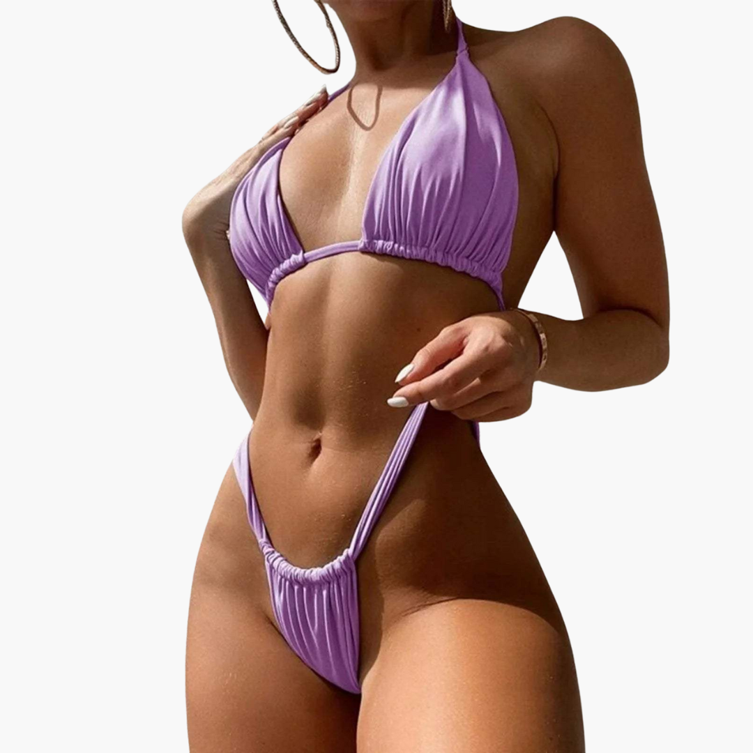 Micro String Bikini - Women’s Triangle Ruched Summer Set