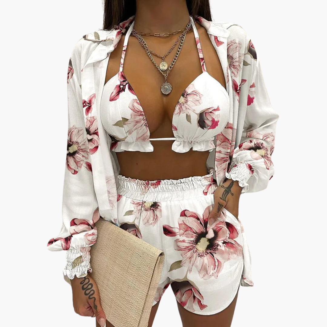 Three-Piece Beach Set - Women's Pastel Summer Co-Ord Outfit