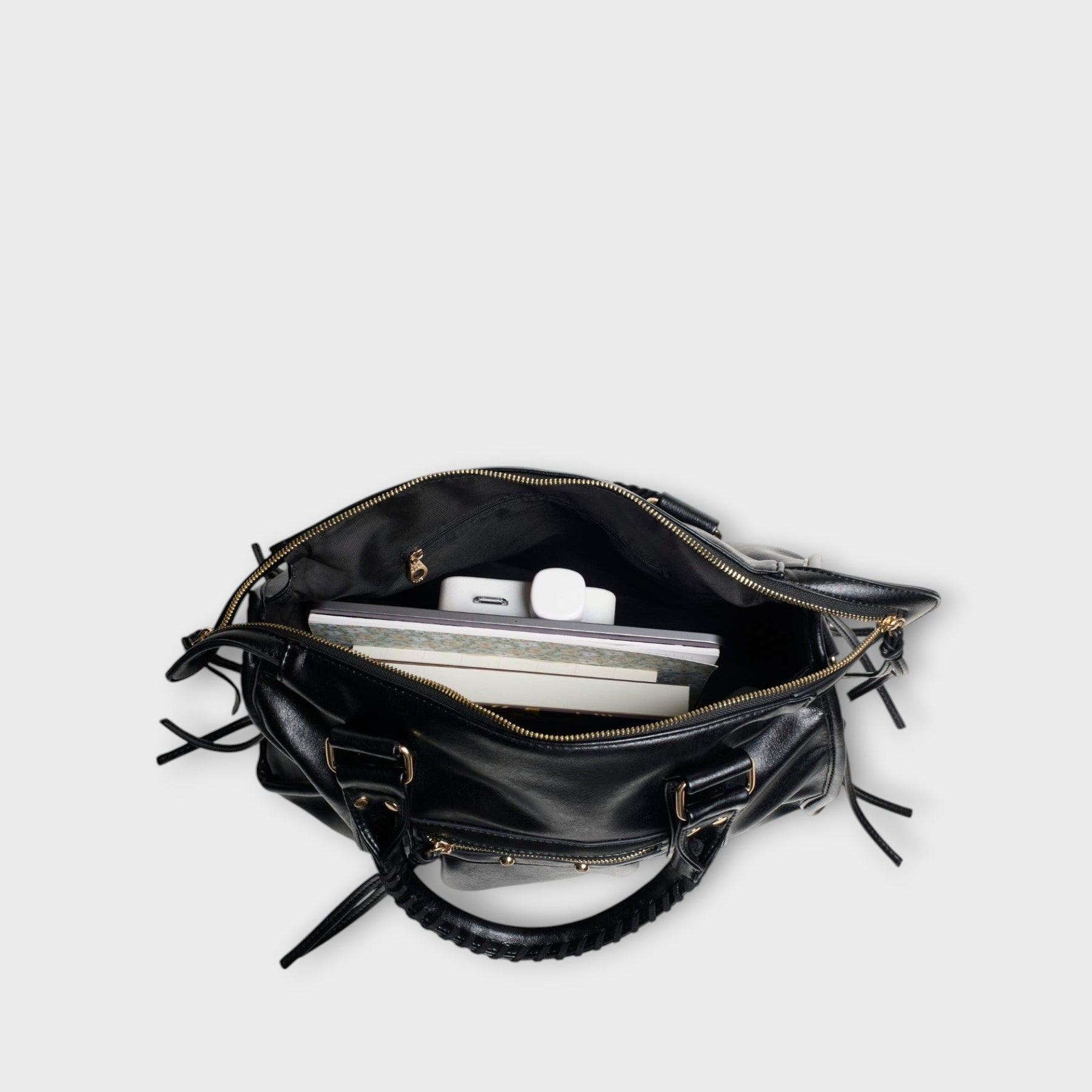 This elegant black bag is designed to easily accommodate a 13-inch laptop.