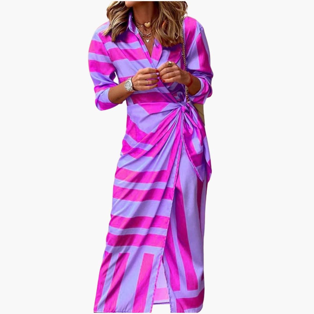 Refresh your wardrobe with our Women's Striped Midi Shirt Dress crafted with a flattering wrap silhouette and a waist tie that enhances your natural shape. The bold stripes lend a contemporary feel, while the breathable fabric ensures all-day comfort. Perfect for relaxed afternoons or more refined occasions, this dress delivers effortless style and confidence. It’s your go-to piece for a seamless transition from brunch to evening plans.