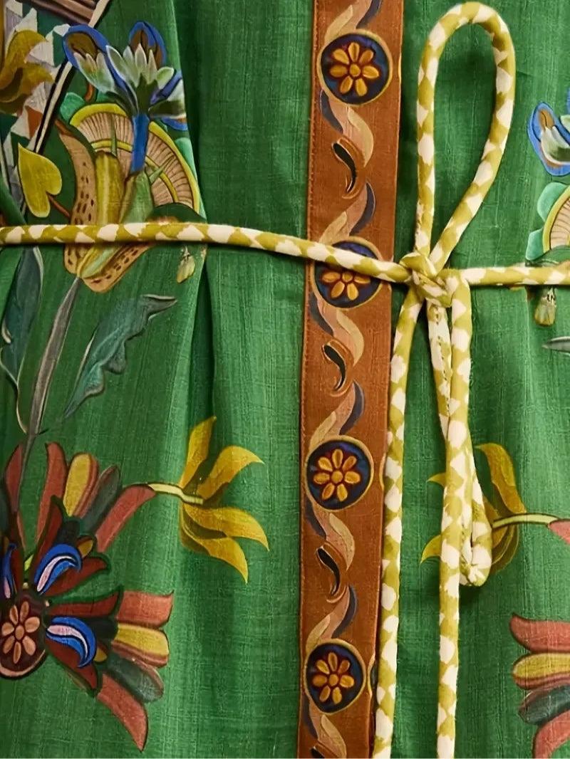 A cozy yet elegant fusion of loungewear and sophistication, this dress wraps you in soft, floral-printed fabric with the relaxed comfort of a cardigan and the graceful drape of a maxi dress. Perfect for effortless layering or wearing as a standalone statement piece.