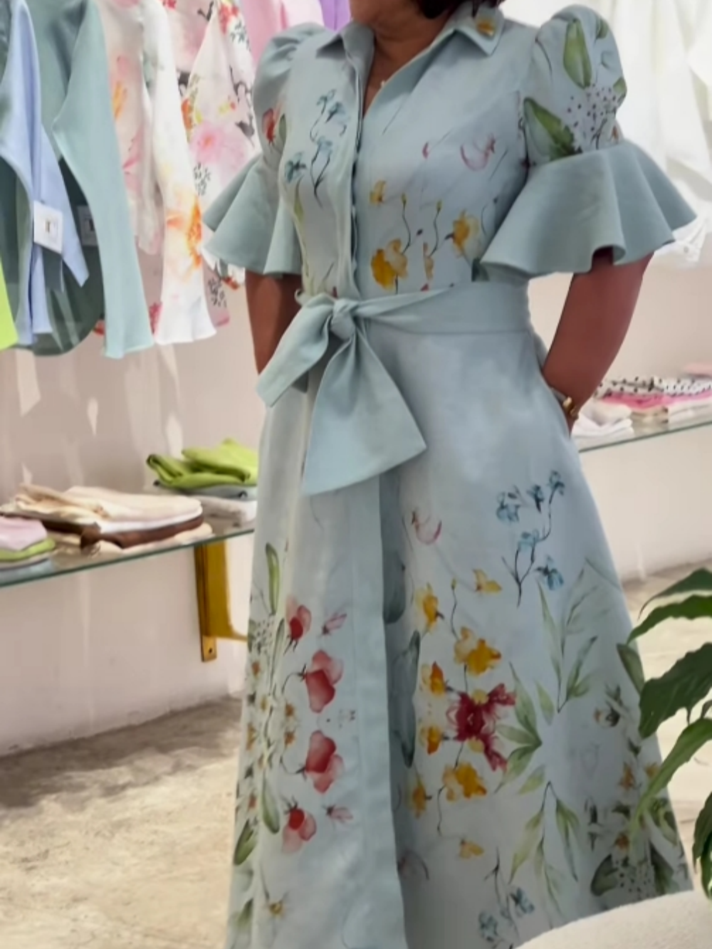 Romantic and whimsical, this dress is a dreamy blend of feminine details and playful charm. The puff sleeves and ruffled accents create a fairytale-like silhouette, while the lace-up front adds a touch of modern allure.