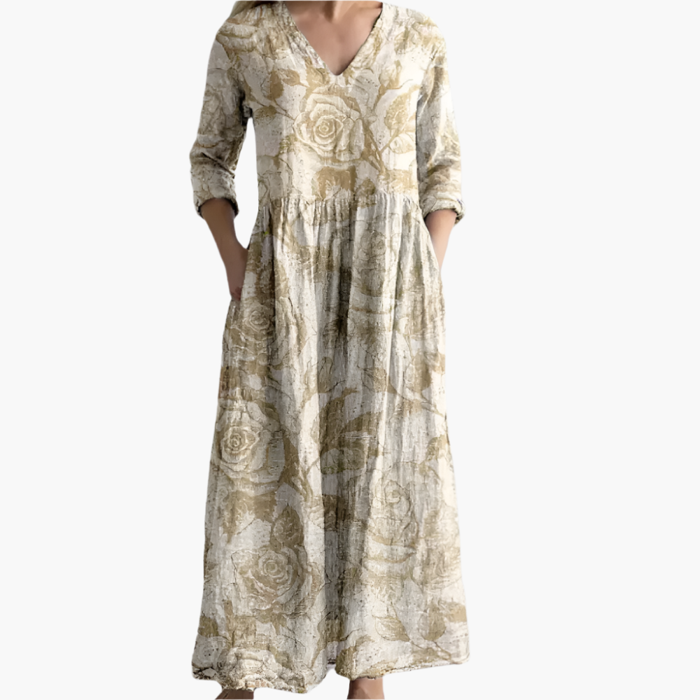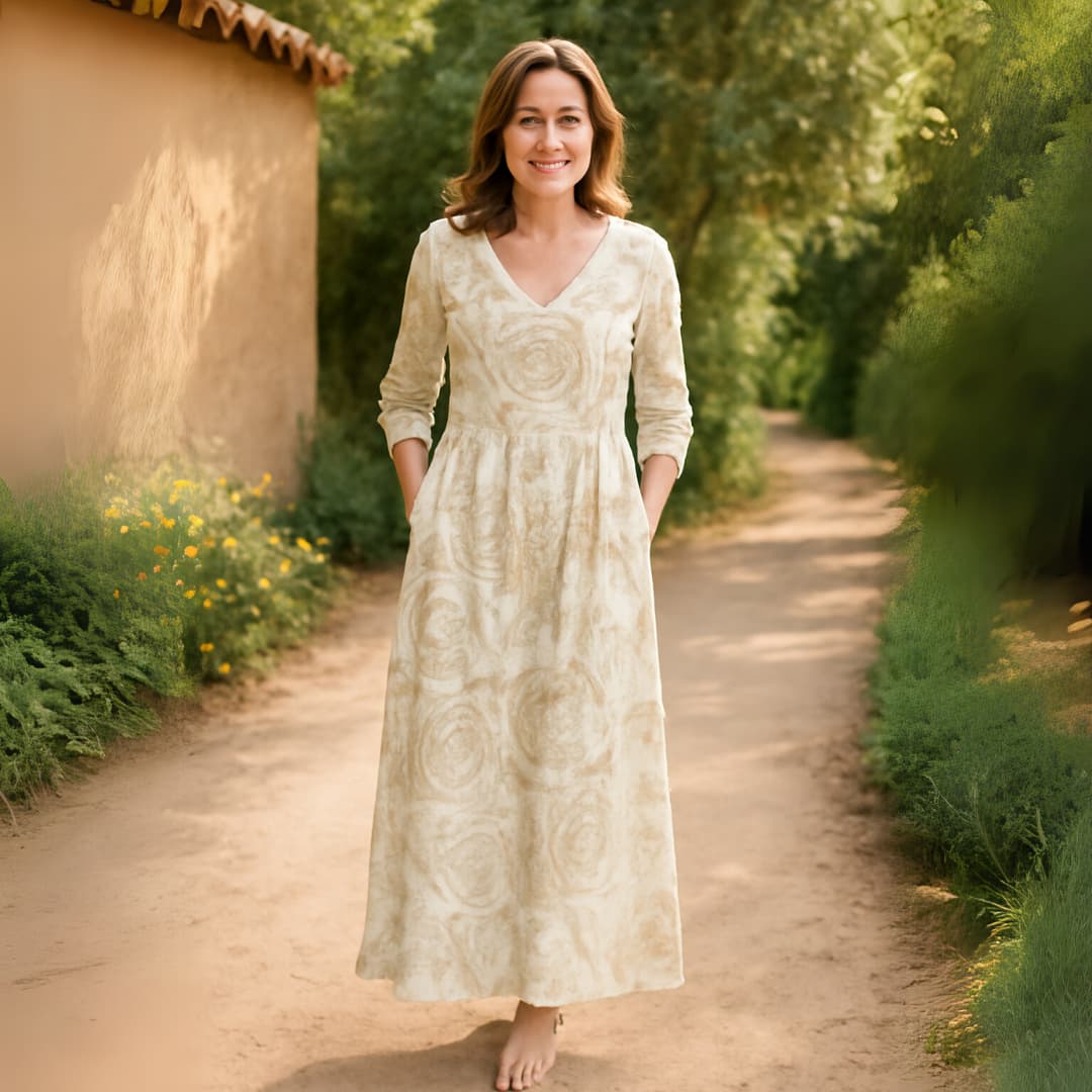 ✔️ Boho Beauty: Striking golden bloom print turns heads effortlessly